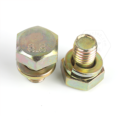 工業(yè)熊碳鋼8.8級(jí)彩鋅定制帶彈墊的六角頭螺栓(彈墊70#鋼)定制D10128